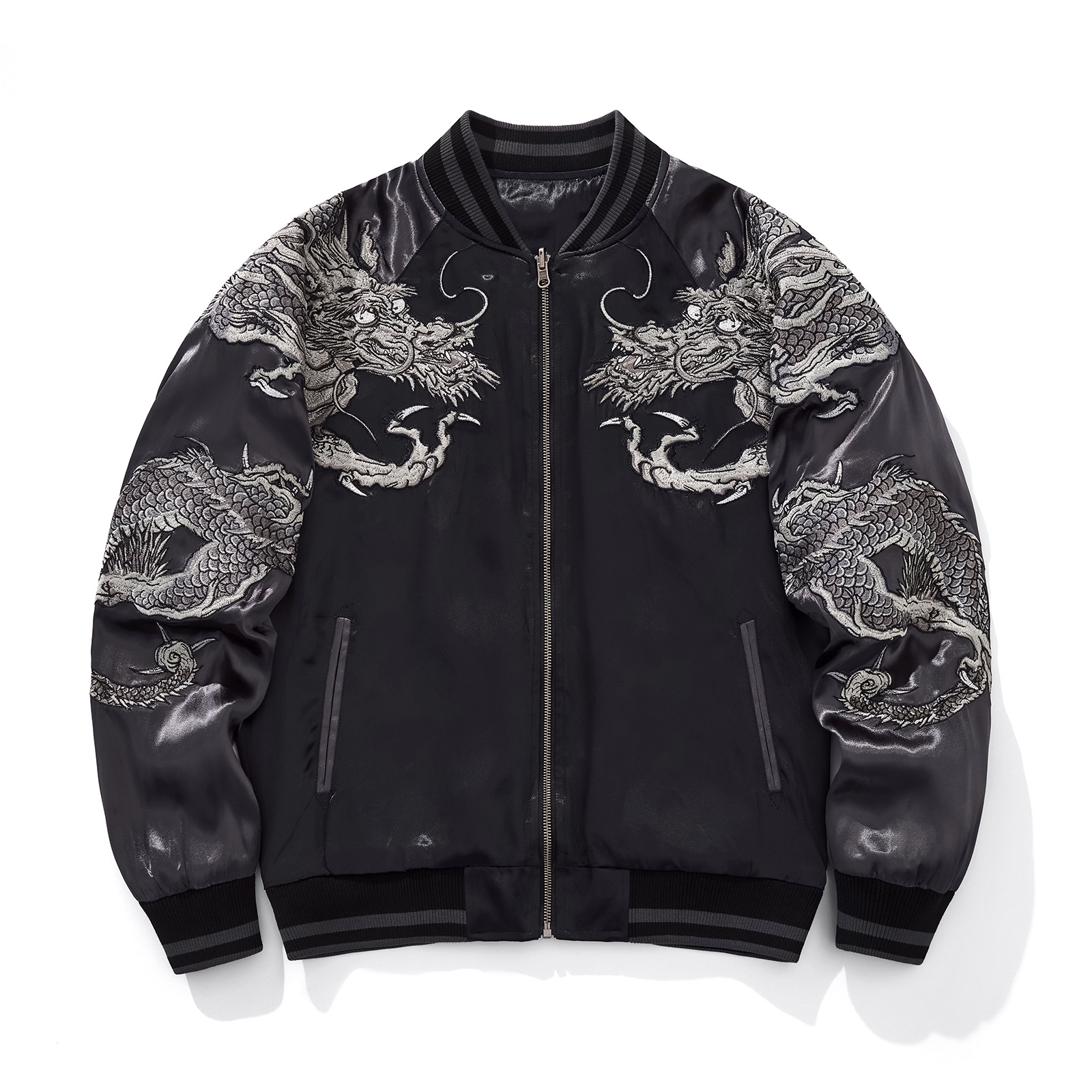 Heavy Duty Fashionably Casual Embroidered Flying Dragon Baseball Jacket