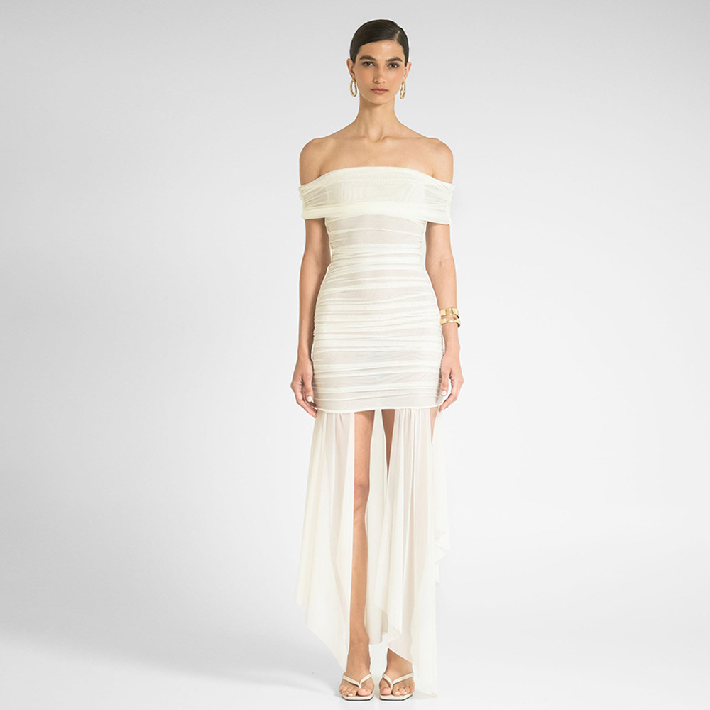 New Stylish And Sexy Strapless Waist-cinching Solid-color Dress