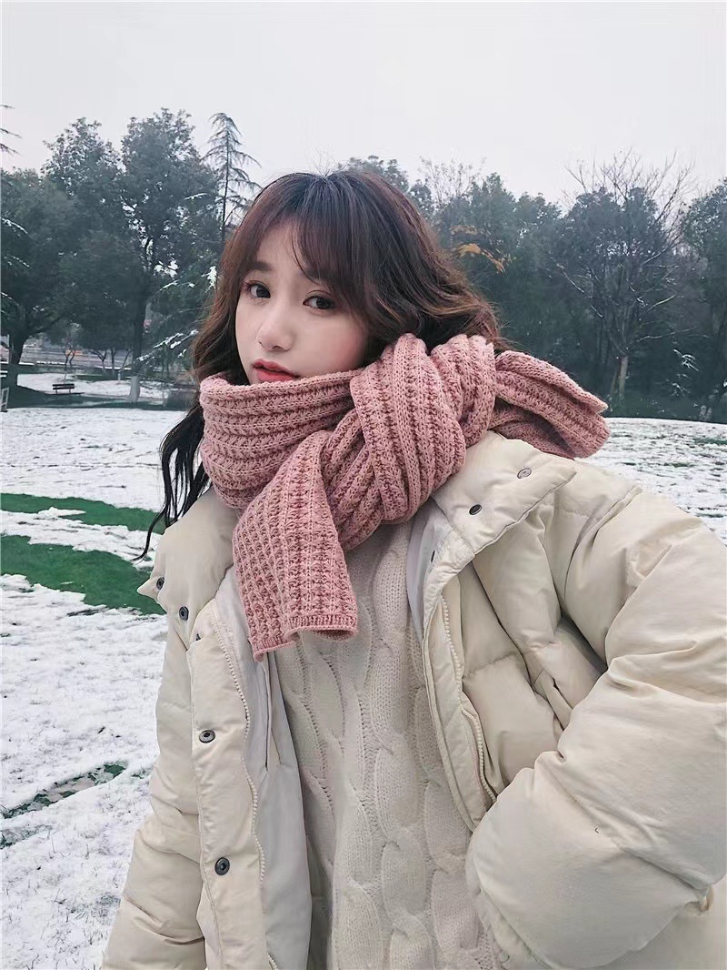Scarf Women Autumn Winter Korean Version Solid Color Knitted Wool