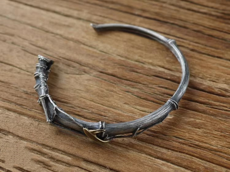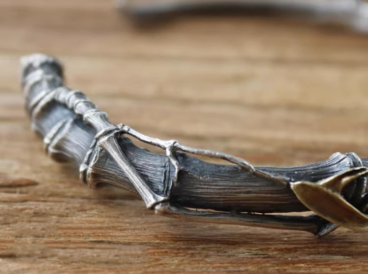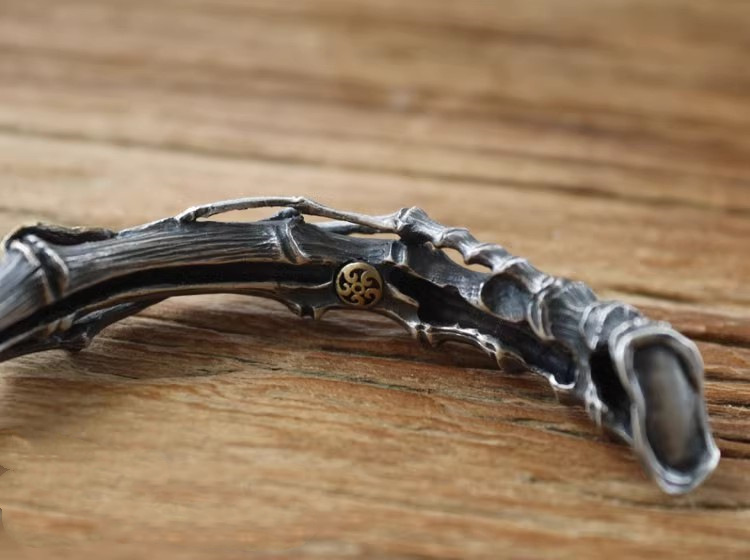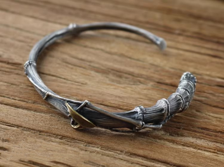 Shique Jewelry Handmade Men's Vintage Silver Aged Brass Inlaid Bamboo Joint Open Bracelet
