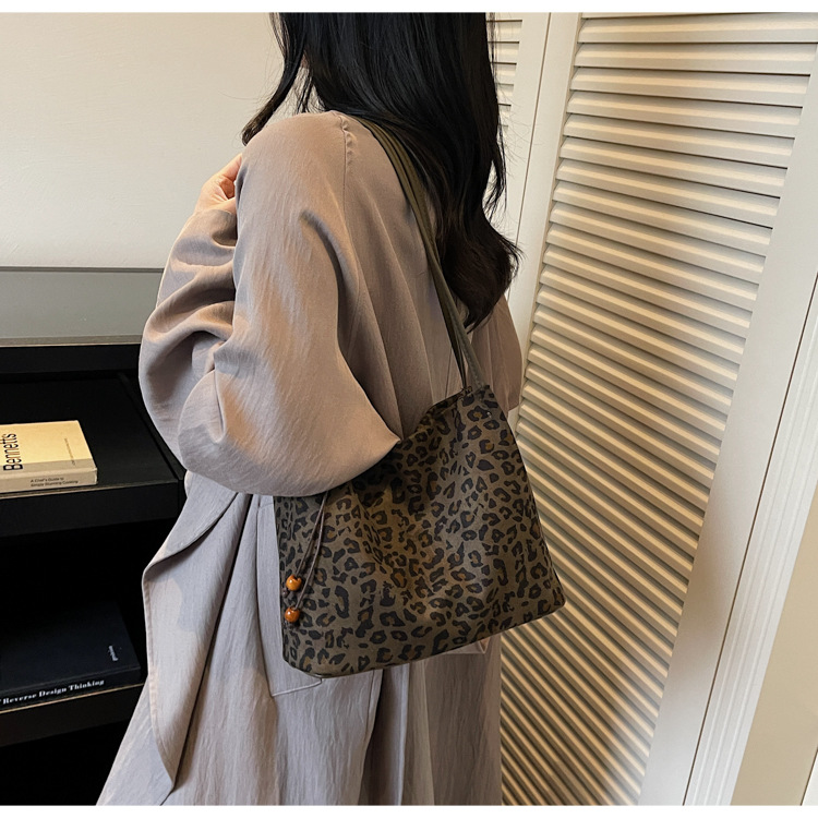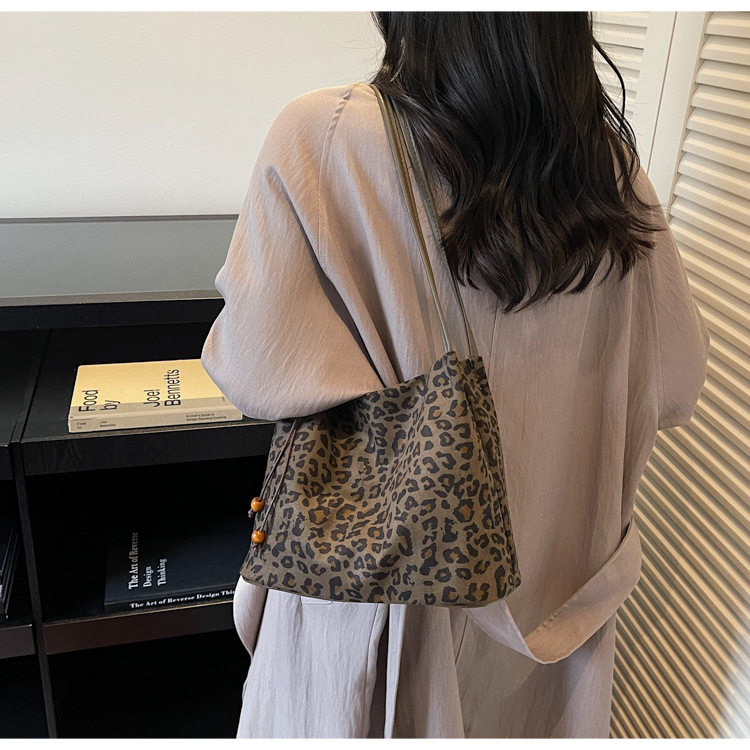 Suede-like Bead Pendant Bucket Bag