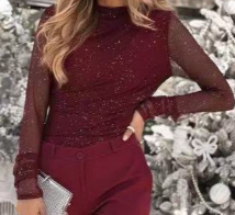 Womens Casual Slim-Fit Top With Mesh Sleeves And A Crew Neck